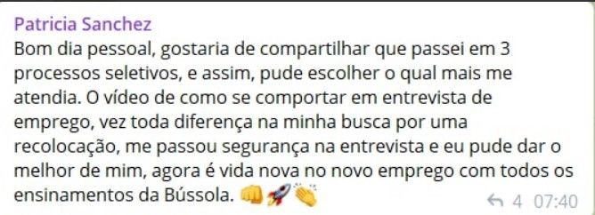 Patricia, depois de acessar ao método, ela se sentiu mais segura, por isso, passou em 3 entrevistas de emprego e pode escolher o que fazia mais sentido para ela.